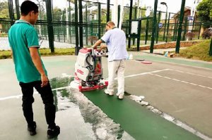 運動場塑膠地面使用洗地機清潔