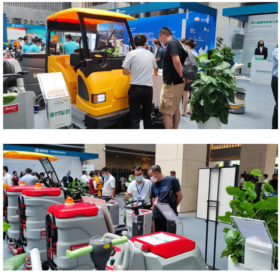 綠保在此次高峰論壇上展出的洗地機、掃地車等電動清潔設備備受與會人員關注,大家結合自身情況向綠保工作人員了解設備清潔性能和清潔解決方案!