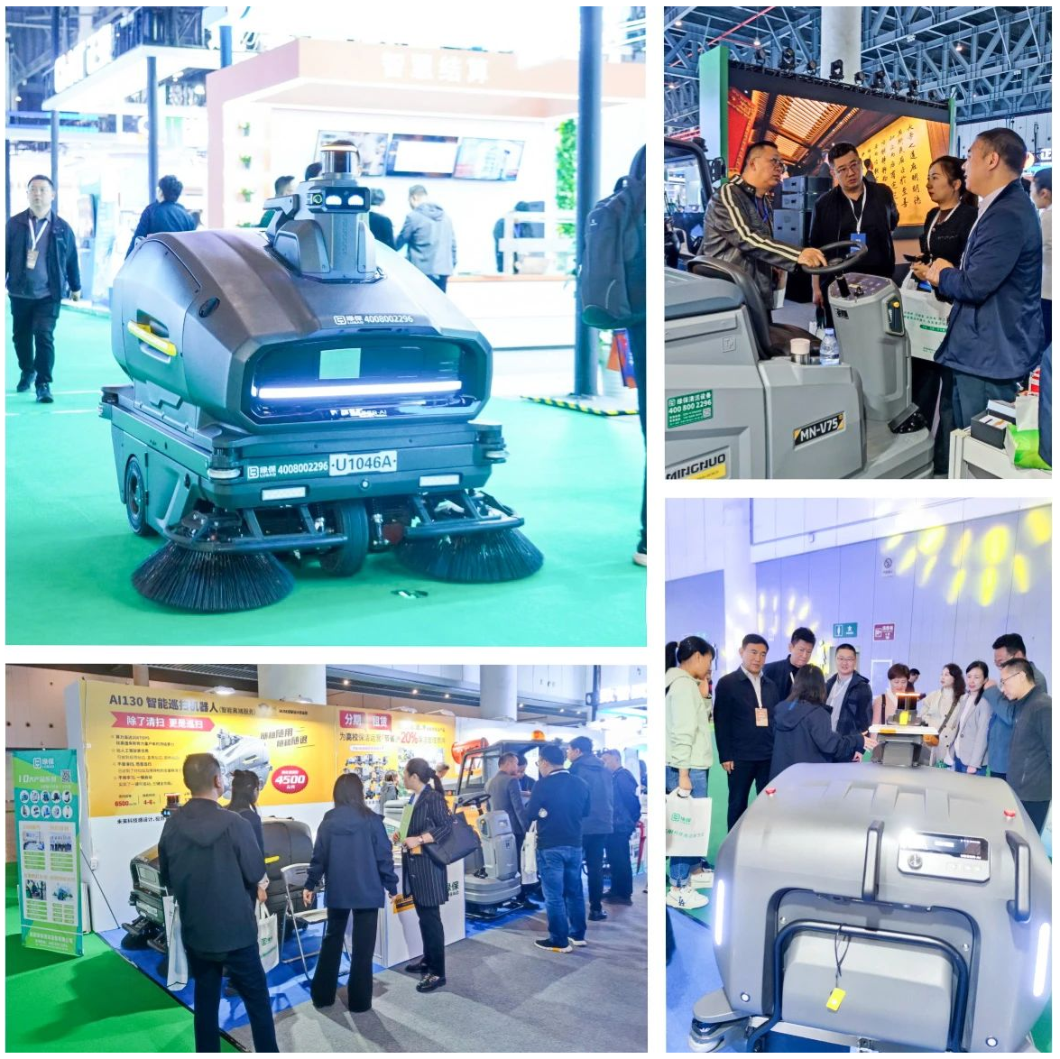 “建設美麗校園,共享智慧清潔。” 在這次展會上,綠保帶來了種類豐富的清潔設備,如掃地車、洗地機等。其中,智能無人清掃車格外引人注目,瞬間成為全場焦點,備受各大高校領導的高度關注。