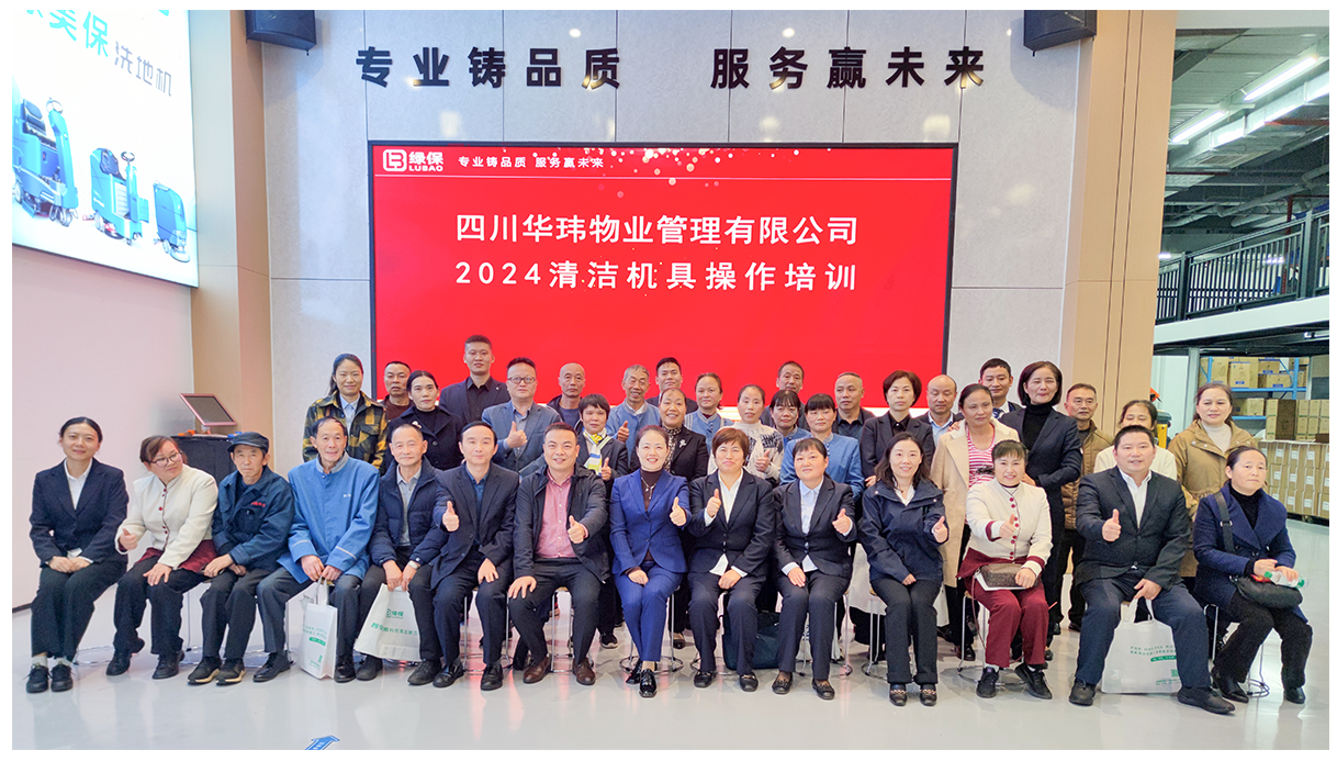12日,四川華瑋物業管理有限公司一行30余人蒞臨綠保清潔總部,開啟了2024年清潔機具培訓課程。此次會議在熱烈且融洽的氛圍中圓滿結束。