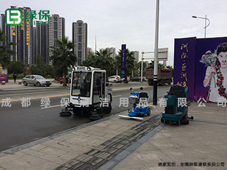 2015年11月24日, 成都綠保清潔用品有限公司自主品牌綠美保H860B駕駛式洗地機以及新型封閉式掃地機MN-E800FB、電動塵推車走進溫江洲際-亞洲灣,為亞洲灣清潔每一個角落,打造舒適,高端舒適的生活環境。