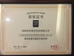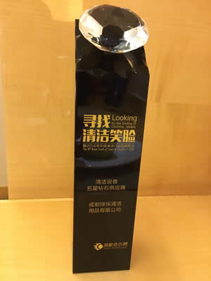 成都綠保清潔用品有限公司受邀參加《尋找清潔笑臉大型公益活動暨2016年第六屆中國清潔行業品牌盛會》并有幸成為西部地區唯一一家入圍——中國清潔行業品牌盛會“清潔設備五星鉆石供應商”獲獎者!!!