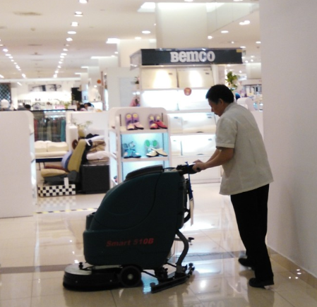 普通清潔是人工完成的,人工清潔是用干濕拖布進行的。清潔過程不僅費力而且清潔效果不佳,百貨公司面積大,對清潔速度和人員素質要求很高,質量不合格不僅不能幫助商場提升形象,還會成為顧客的障礙和安全隱患。
