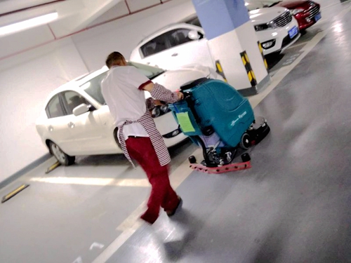 車庫用駕駛式洗地機可不可以?絕對比原始的傳統清潔設備更高的效率,絕對于普通的手推式洗地機,車庫運用駕駛式洗地機來清潔的劣勢是不言而喻的。