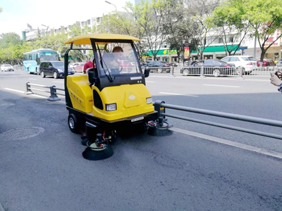 掃地車的前端裝置了兩個旋轉(zhuǎn)刷子,當(dāng)掃地車向前行走時、前述的刷子便會將地上的垃圾和沙土透過旋動而帶到車輛的中間,隨而利用掃地車的真空吸頭將垃圾和沙土抽吸進(jìn)掃地車上的廢物收集箱中。