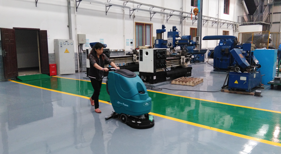 清潔區域:車間清潔區域面積窄、設備多,可使用小型手推式洗地機;