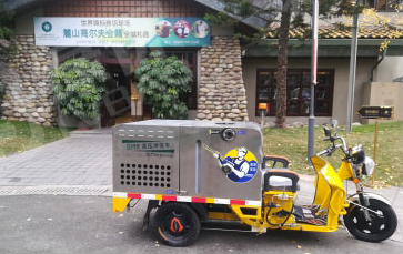 小型電動三輪高壓清洗車全車采用進口一線品牌發動機和意大利AR高壓水泵,沖洗壓力可達275公斤,可以輕松沖洗掉各類頑固污漬。它具有雙側可調節對沖、前沖,可以輕松完成對小區路面、路沿石、人行道的沖洗。而且它還配有15米長管和手持高壓水槍,快速組裝完成,即可對小區井蓋、公告欄小廣告、雕塑、垃圾桶等場所進行重點清洗,不留衛生死角。