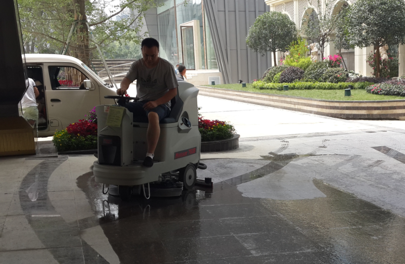 通常來說,節假日期間,酒店晝夜人流量不斷,保潔工人們想要維護好地面環境,只靠一個拖把來來回回,不僅會累死而且效率不佳,所以星級大型酒店早早的便開始用洗地機來幫助工人渡過節假日高峰期。