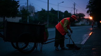 深冬的凌晨當(dāng)大多數(shù)市民還在熟睡中,寂靜的大街上只有繁星點點,昏暗的路燈下,他們就已經(jīng)開始揮舞著掃帚奮戰(zhàn)在大街小巷,一年四季從早到晚,天天如此從不間斷,不怕臟不怕累,把我們的街道打掃的干干凈凈,弄臟了自己,換來了萬家潔凈,在平凡的崗位上做出了不平凡的事情。