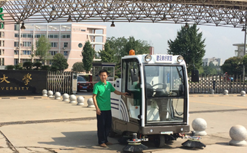 2、學校的室外地面一般均為水泥地面道路或者瀝青地面道路,我們會根據客戶現場情況及面積大小推薦使用手推式掃地機或者駕駛式掃地機。