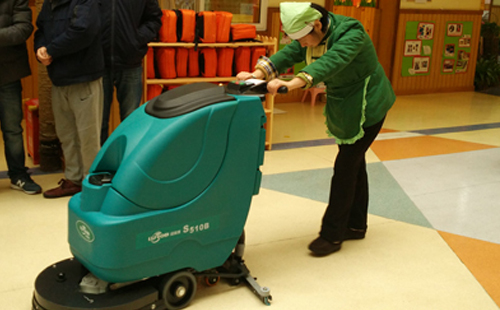 1、學校的室內地面一般均為硬質類地面,對于這種地面的日常清潔根據客戶現場情況及面積大小可推薦使用手推式或者駕駛洗地機;