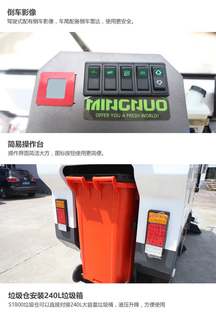 • 四輪掃路車MN-S1800配備240L標準垃圾桶0
